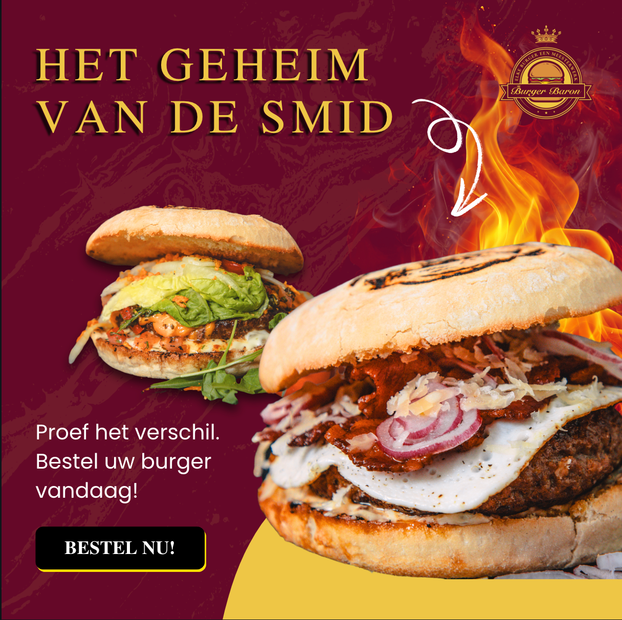 Welkom in mijn culinaire rijk, waar elke burger een meesterwerk is en elk detail vertelt over passie, traditie en verfijning. Ik ben de Baron, uw toegewijde gastheer, en ik heet u van harte welkom in het exclusieve universum van "Dé BurgerBaron".